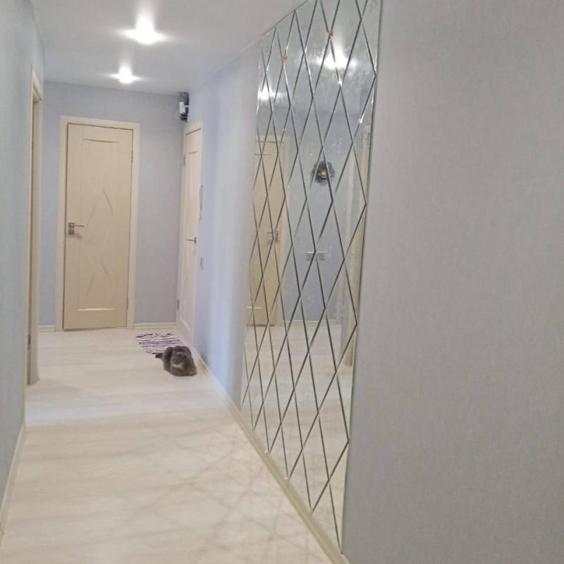 Скучный, узкий, длинный, серый коридор тоже можно разнообразить, если украсить его зеркальным панно.